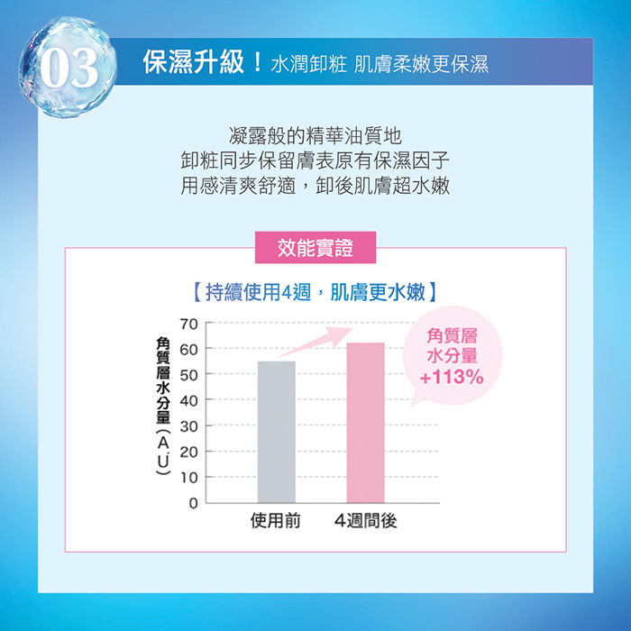 | 使用方法 | 無需乳化,按壓約3下將適量卸粧油均勻塗於全臉,輕輕按摩1分鐘後,用水洗淨即可。 |