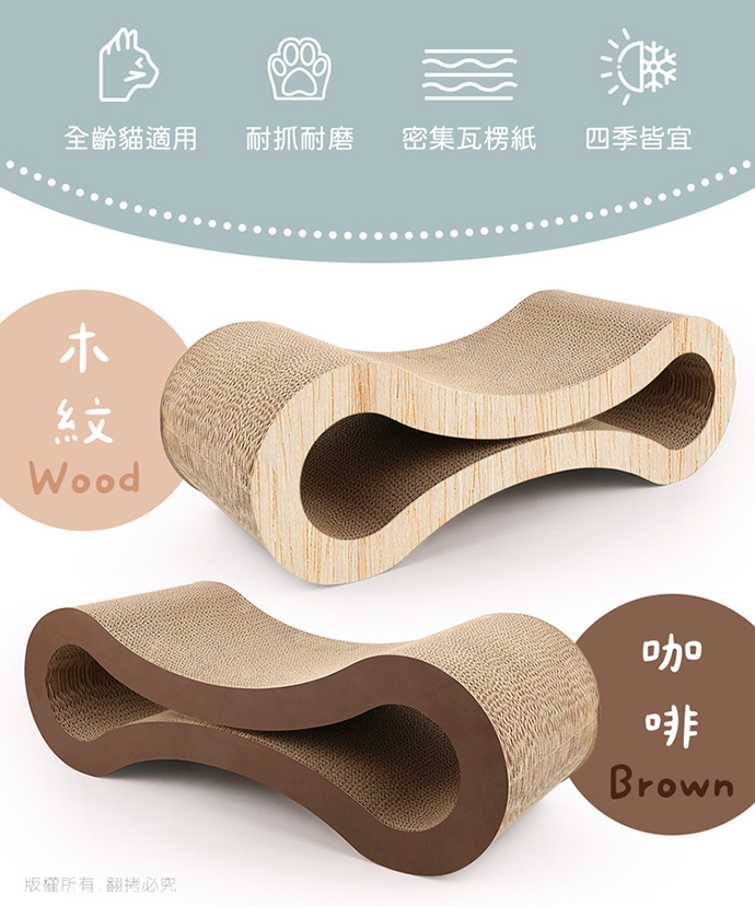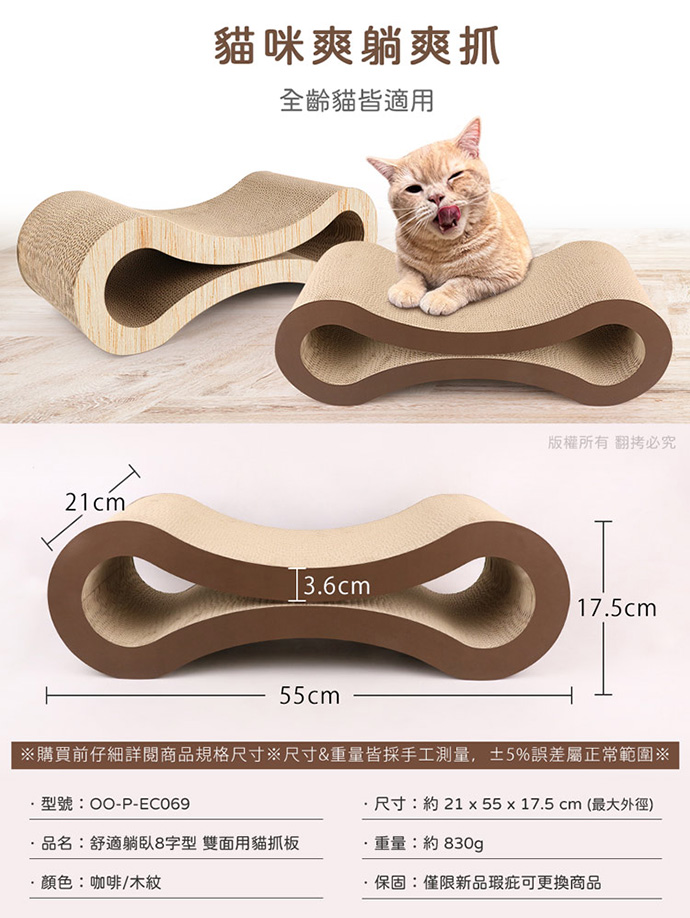 --8字型設計弧型抓板,可躺可磨爪,雙面可用,快樂加倍--