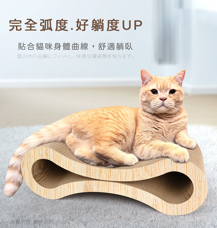 8字型下凹式設計,完全弧型貼合貓咪身軀,好躺卧好磨爪