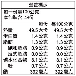 | 過敏原資訊 | 本產品含有牛奶、堅果、含麩質之穀物、大豆及其製品。 |