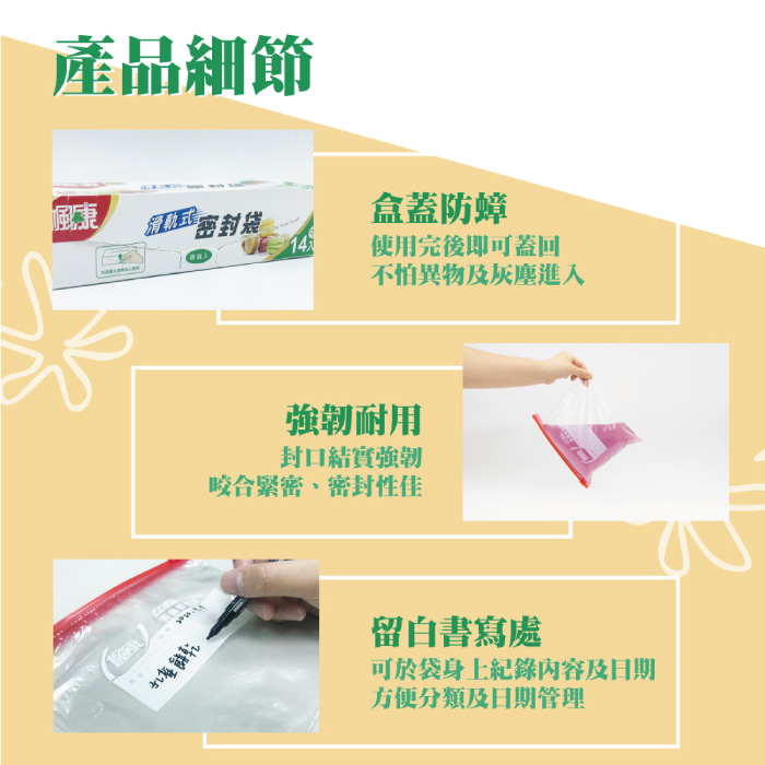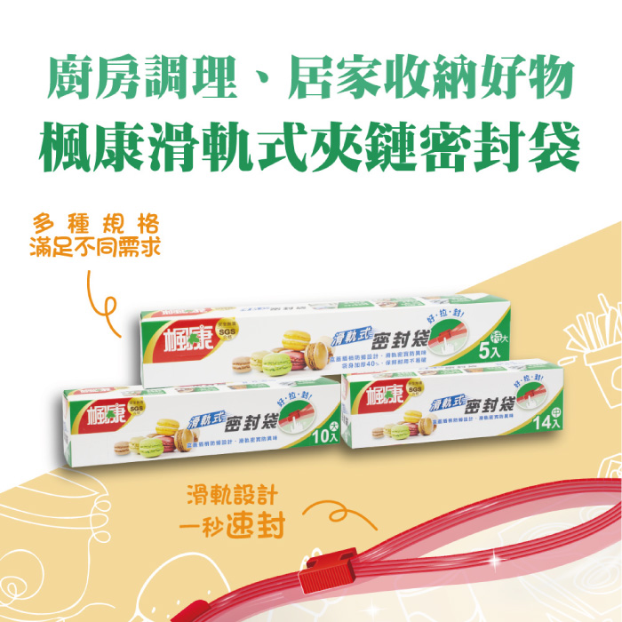 | 商品名稱 | 【楓康】滑軌式夾鏈密封袋 六件組(特大x2/大x2/中x2) |