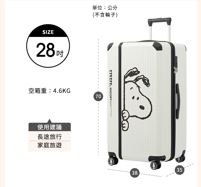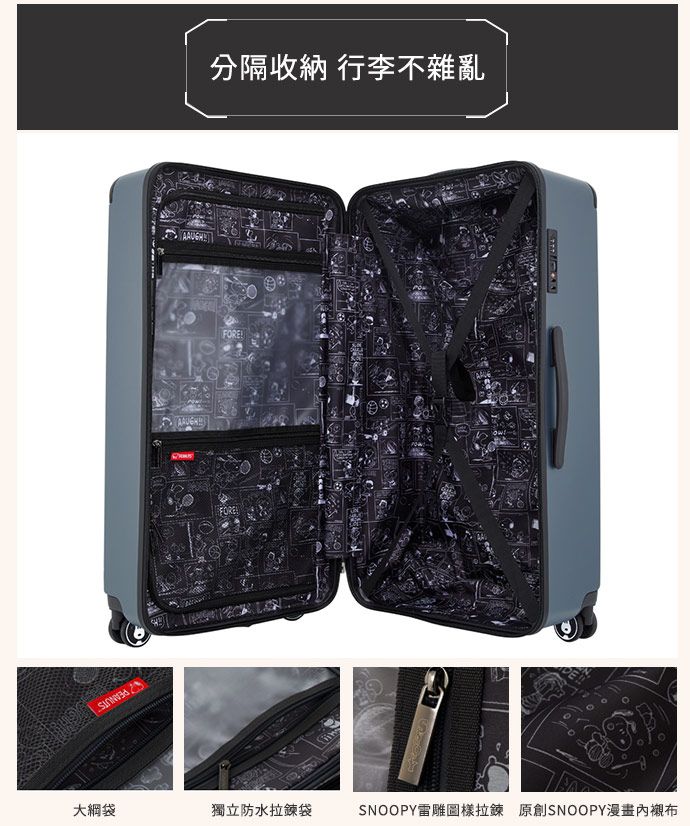 | 商品名稱 | 史努比經典款行李箱28吋-2色任選(黑/藍灰) |