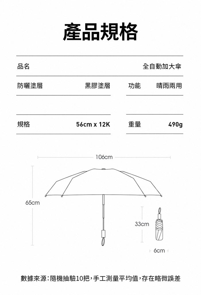 | 【尺寸】 | 單支雨傘-收納:6*33cm / 展開:106*65cm |