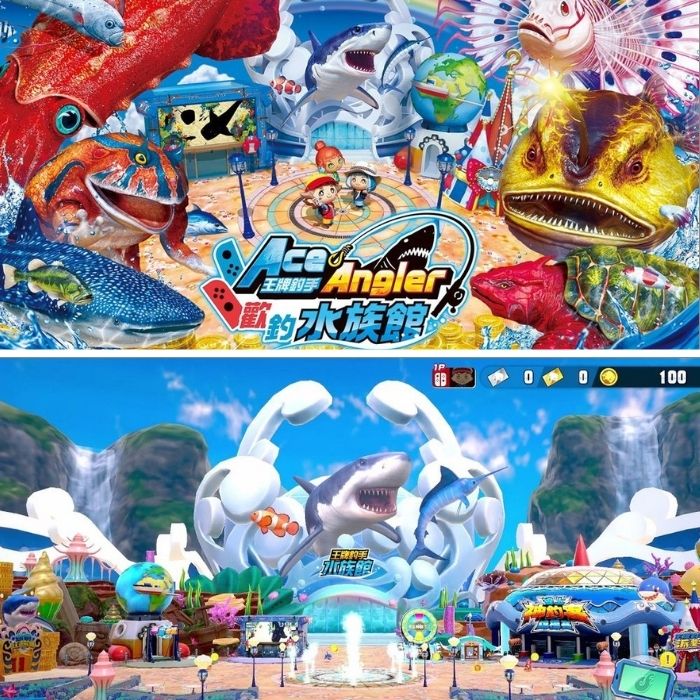 本次的《王牌釣手 歡釣水族館》,是擁有以鯊魚為象徵的水族館,以及 5 個遊樂設施的主題樂園「大豐收硬幣樂園」。玩家將可以在大豐收硬幣樂園的遊樂設施中,盡情釣魚玩樂並收集硬幣,並加入了全新關卡及大魚,最多可由 4 名玩家透過鄰近主機通訊或網路通訊方式一同遊玩。另有劇情模式、推硬幣遊戲、派對模式等各式各樣的模式,可以 1 人遊玩,更可與眾人盡享《王牌釣手》的釣魚樂趣。使用收集的硬幣獲得魚類,並加入水族館,以完成共 12 層樓的水族館為目標。