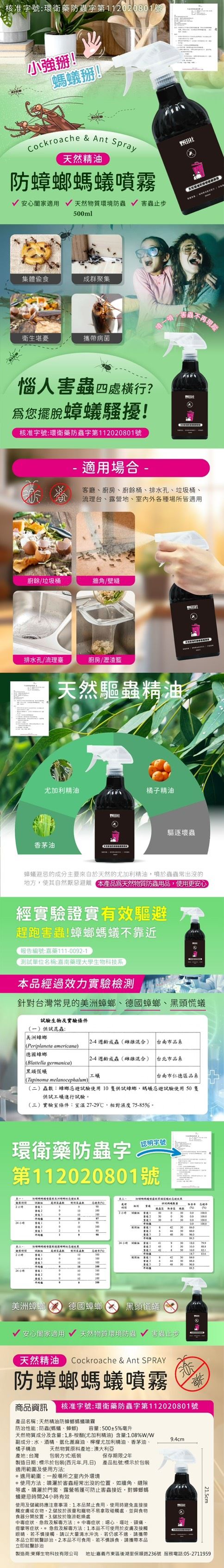 | 商品名稱 | 野田社 天然精油防蟑螂螞蟻噴霧500ML-6瓶 |