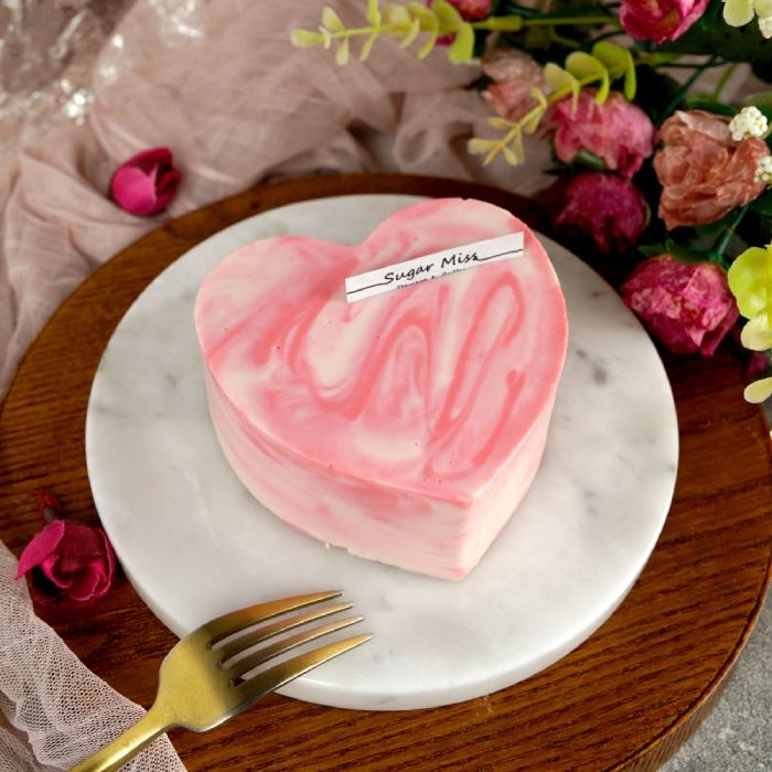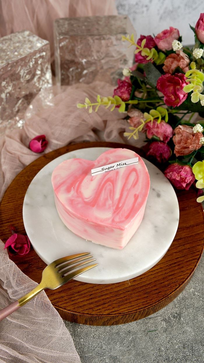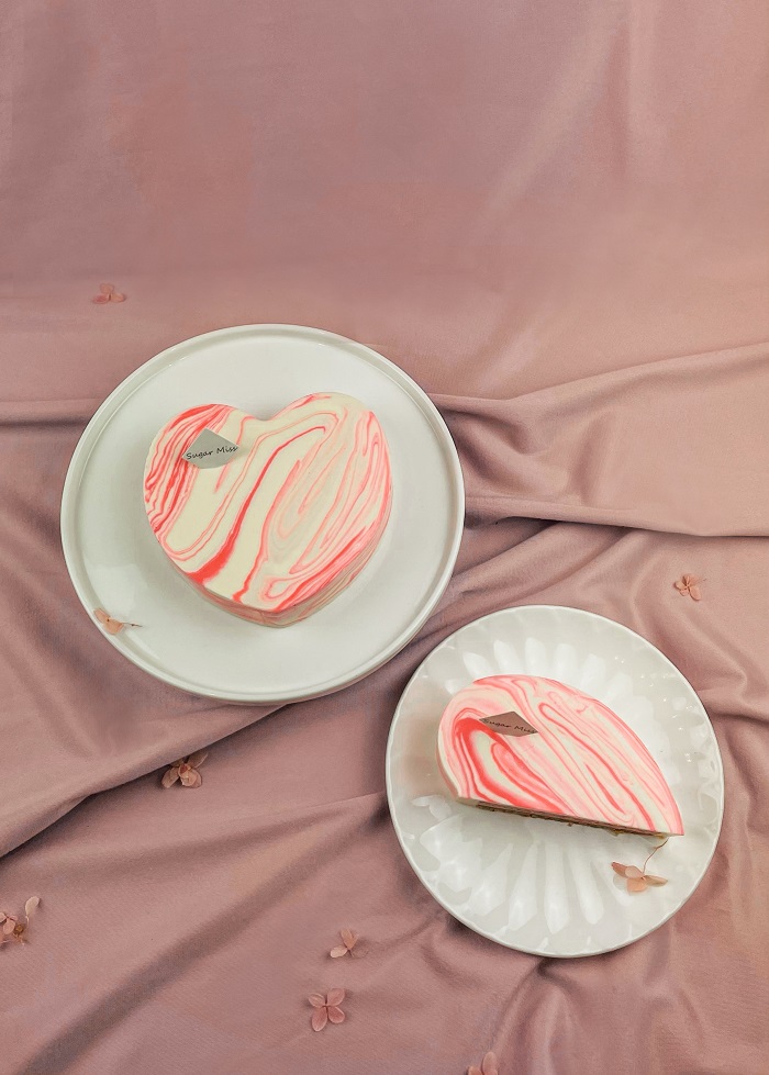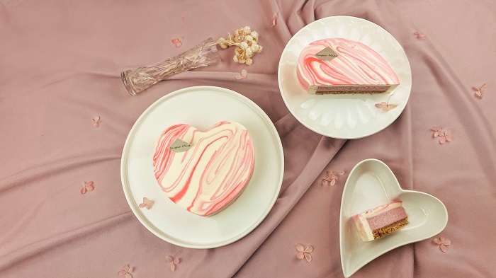 【糖思】愛心玫瑰大理石乳酪蛋糕口感綿密滑順,乳酪香濃不膩,伴隨淡雅玫瑰花香與果香,與大理石般交錯的視覺美感。