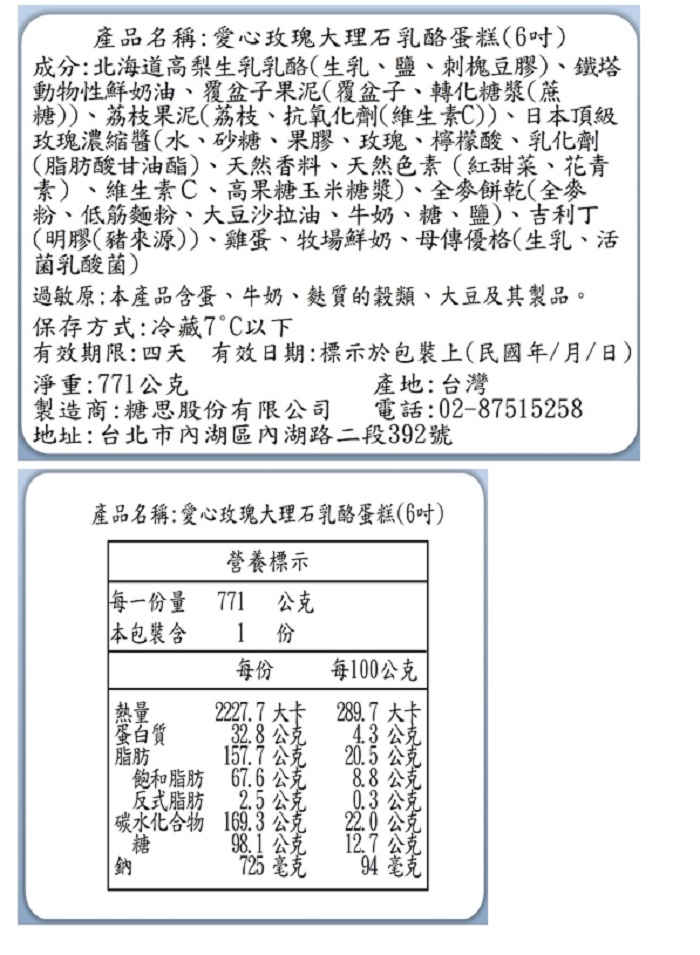 | 商品名稱 | 【糖思】愛心玫瑰大理石乳酪蛋糕(771g/顆) |