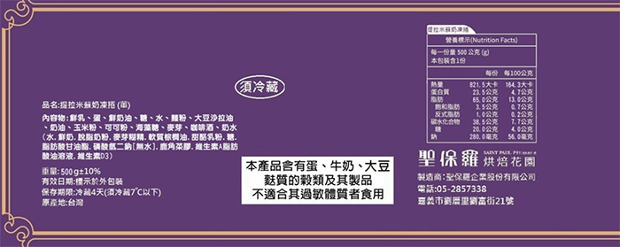 | 商品名稱 | 【聖保羅】提拉米蘇奶凍捲10條(500g/條) |