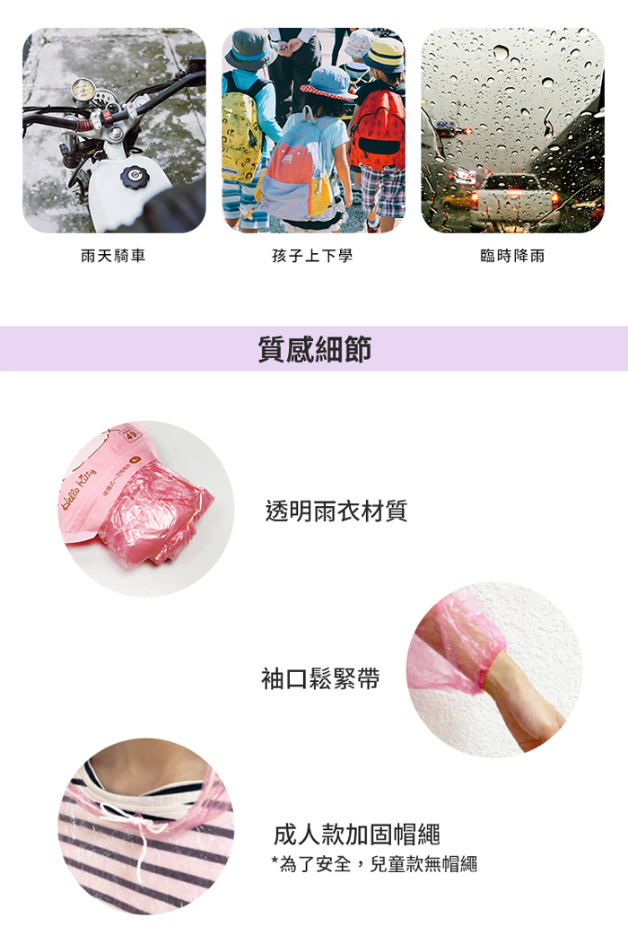 | 【商品名稱或型號】 | 【三麗鷗】可愛輕巧便攜雨衣(成人款) [6入組] |