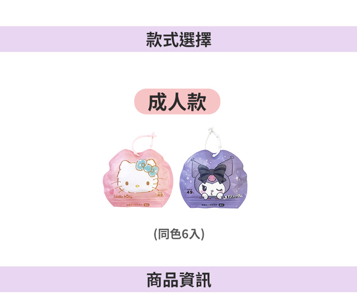 | 【規格或顏色】 | A.凱蒂貓-成人款x6 B.酷洛米-成人款x6 |