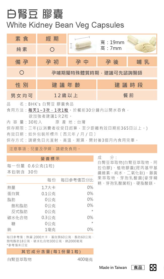 | 商品名稱 | BHK"s 白腎豆 素食膠囊 |