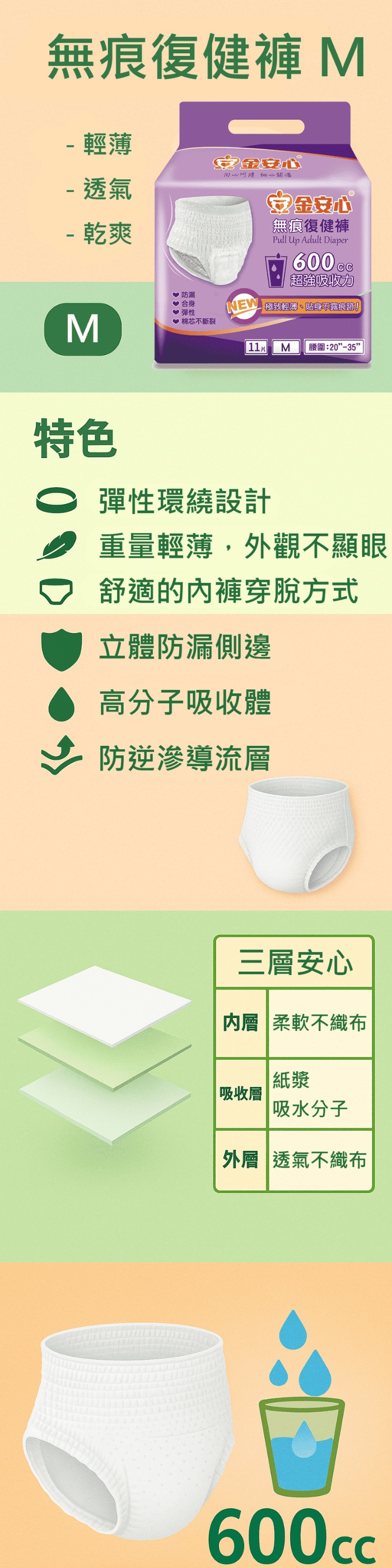 | 商品名稱 | 金安心 無痕復健褲-M號 |