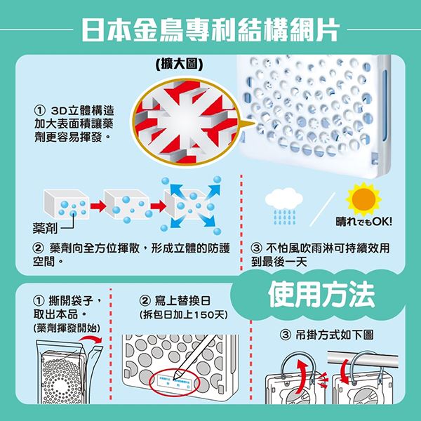 | 商品名稱 | 日本金鳥室內外防蚊掛片150日戶外用 |