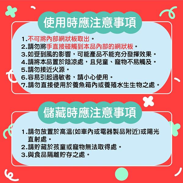 2.請勿將手直接碰觸到本品內部的網狀板。