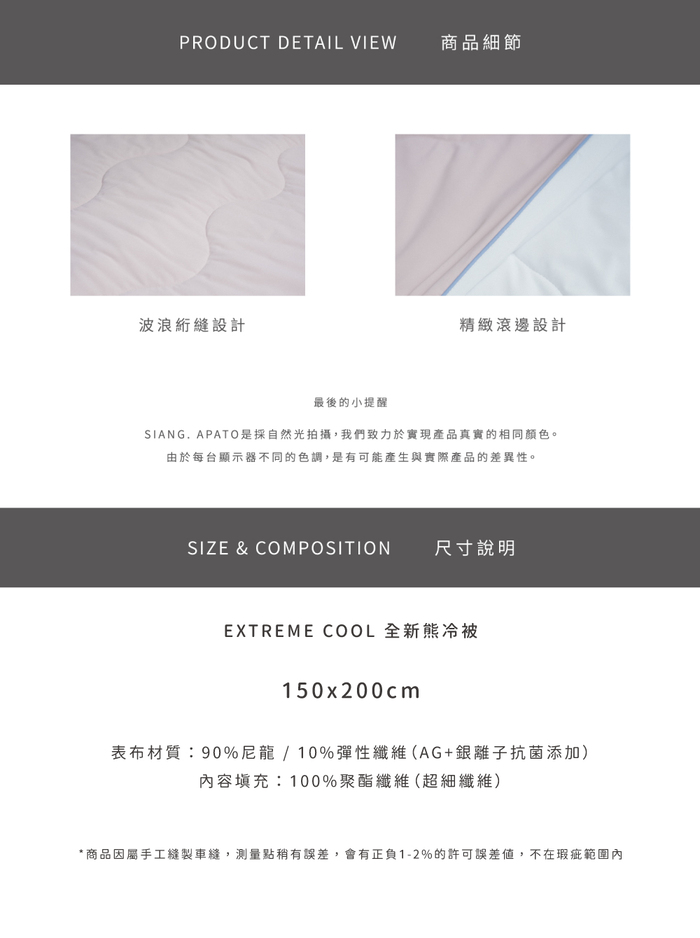 | 內容物 | 熊冷被-1件、熊冷枕套x2入 |