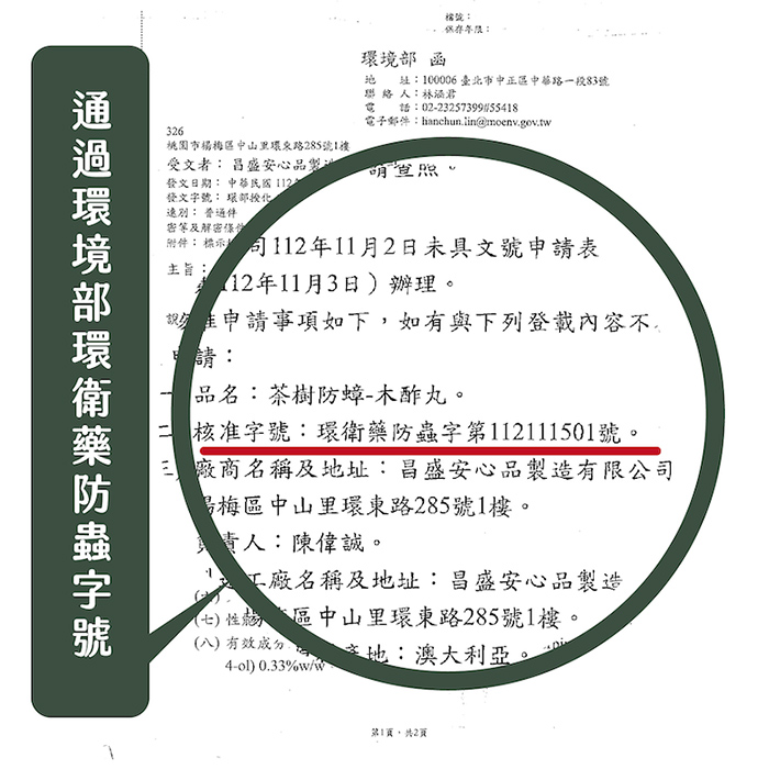 環境部核准字號:環衛藥防蟲字號第112111501號