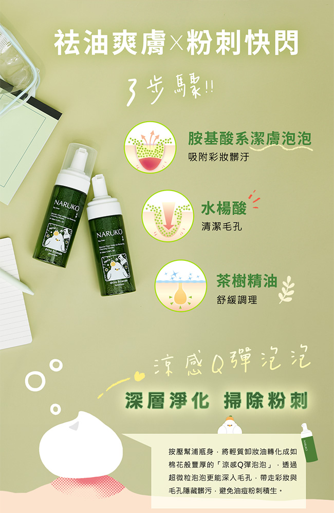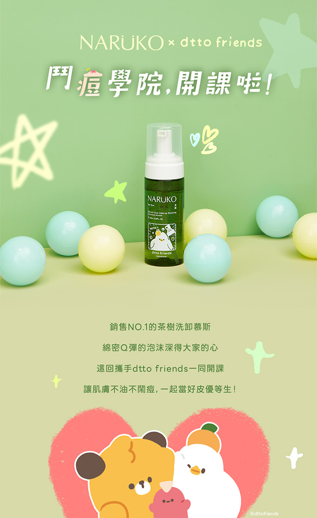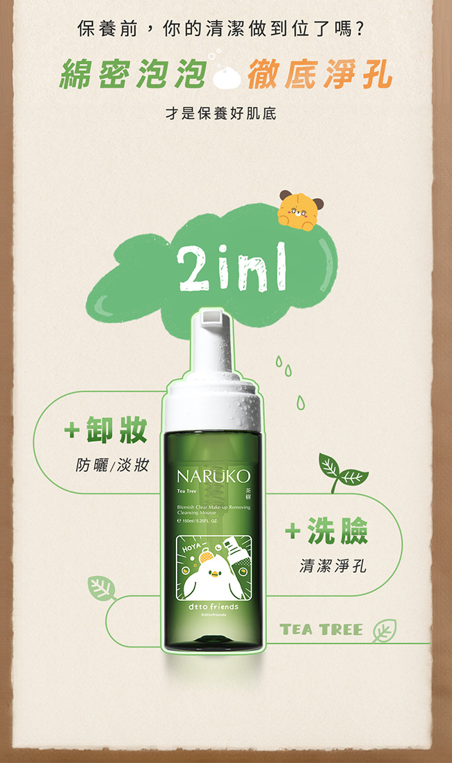 | 商品名稱/包裝內容規格 | NARUKO茶樹粉刺快閃洗卸兩用慕絲(dttofriends限定版)150ml*2瓶 |