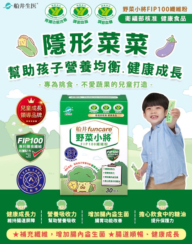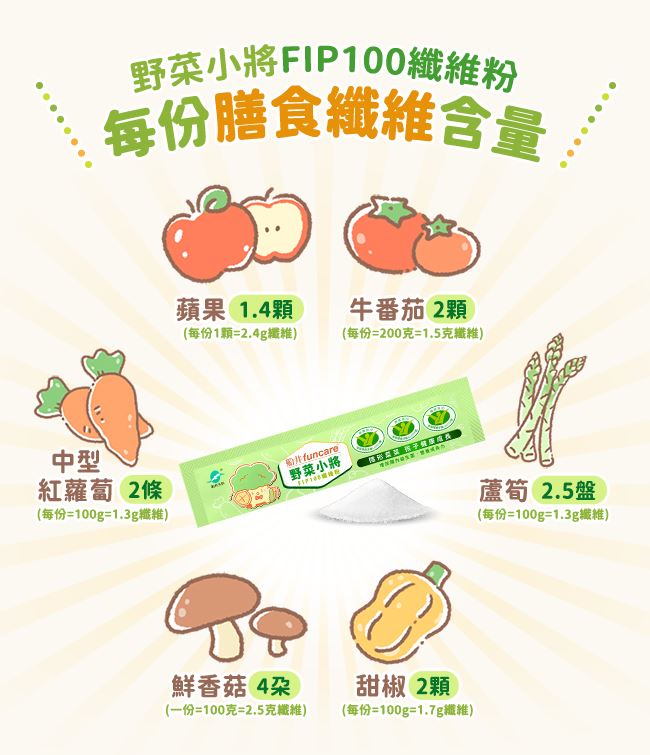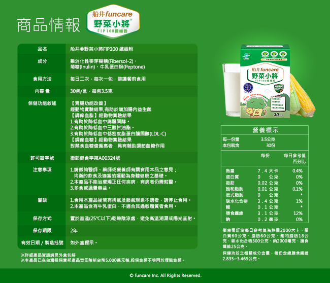 | 包裝內容/商品規格 | 船井funcare野菜小將FIP100纖維粉30入*3盒 | |