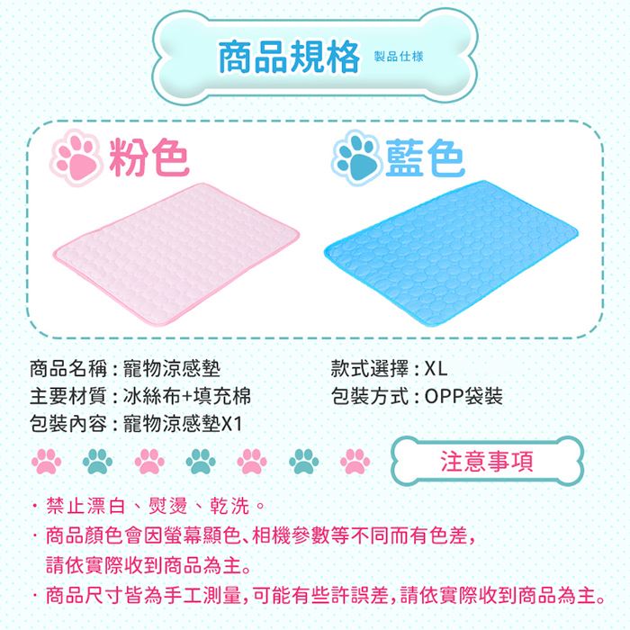 | 商品名稱 | 【買一送一】寵物冰絲涼感墊(2色可選)-XL |