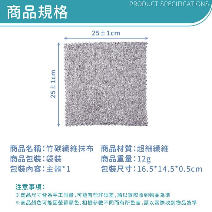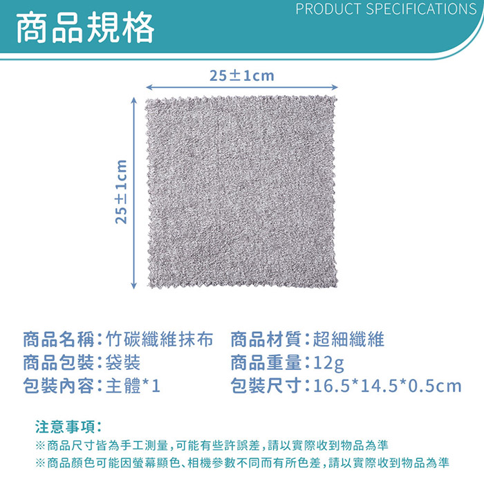 | 商品名稱 | 【10入組】竹碳纖維抹布25x25cm |