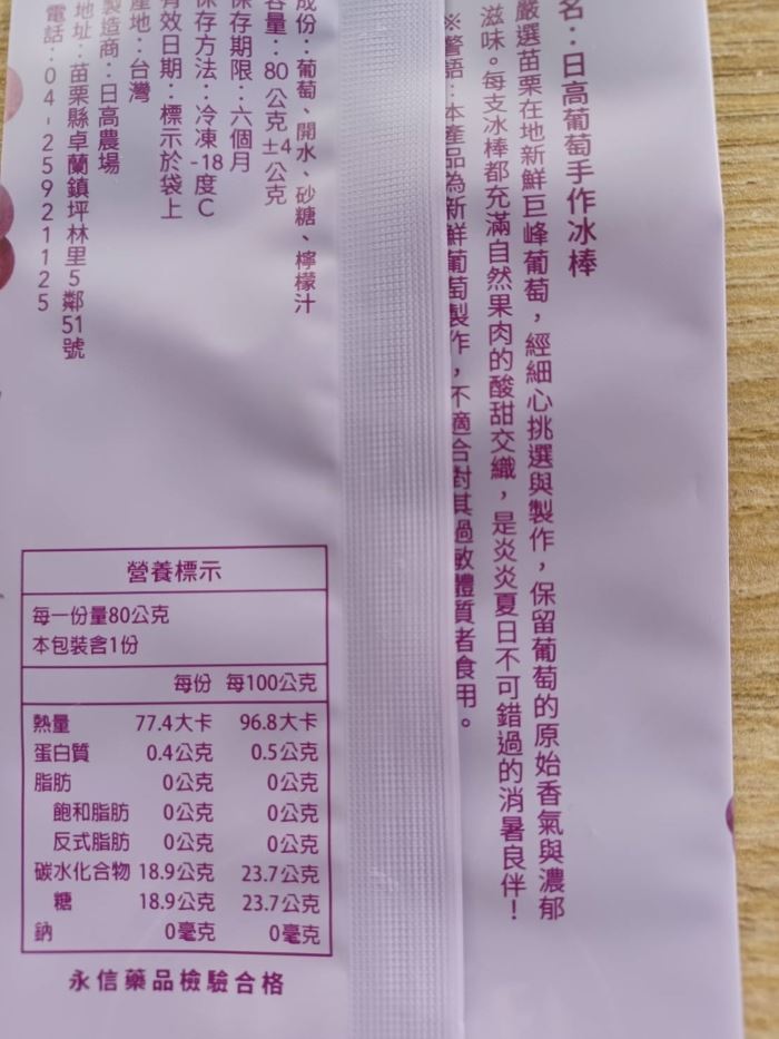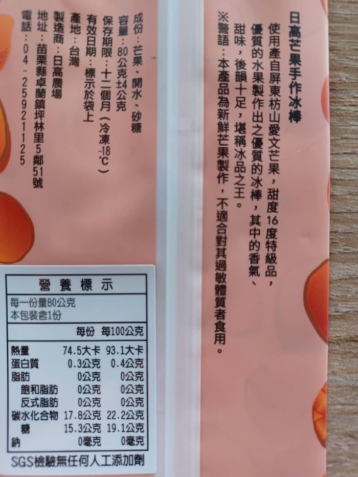 | 商品名稱 | 芒果冰棒/草莓冰棒/葡萄冰棒/百香果冰棒/芭樂冰棒/鳳梨冰棒 |