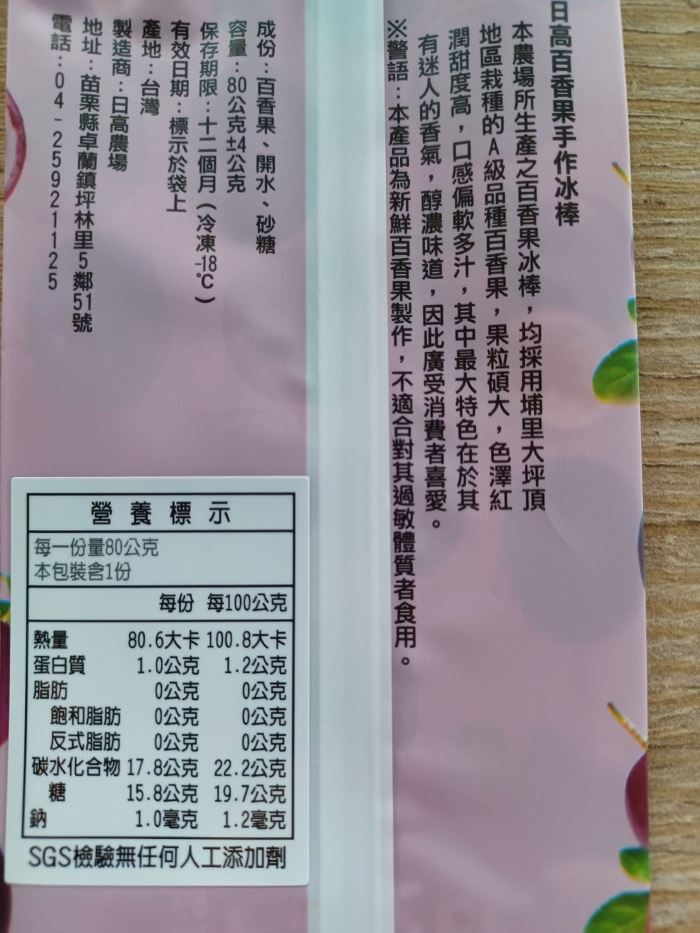 ▲ 百香果冰棒~採用埔里大坪頂地區栽種的A級品種百香果,果粒碩大,色澤紅潤甜度高,口感多汁,最大的特色是其有迷人的百香果香氣。
