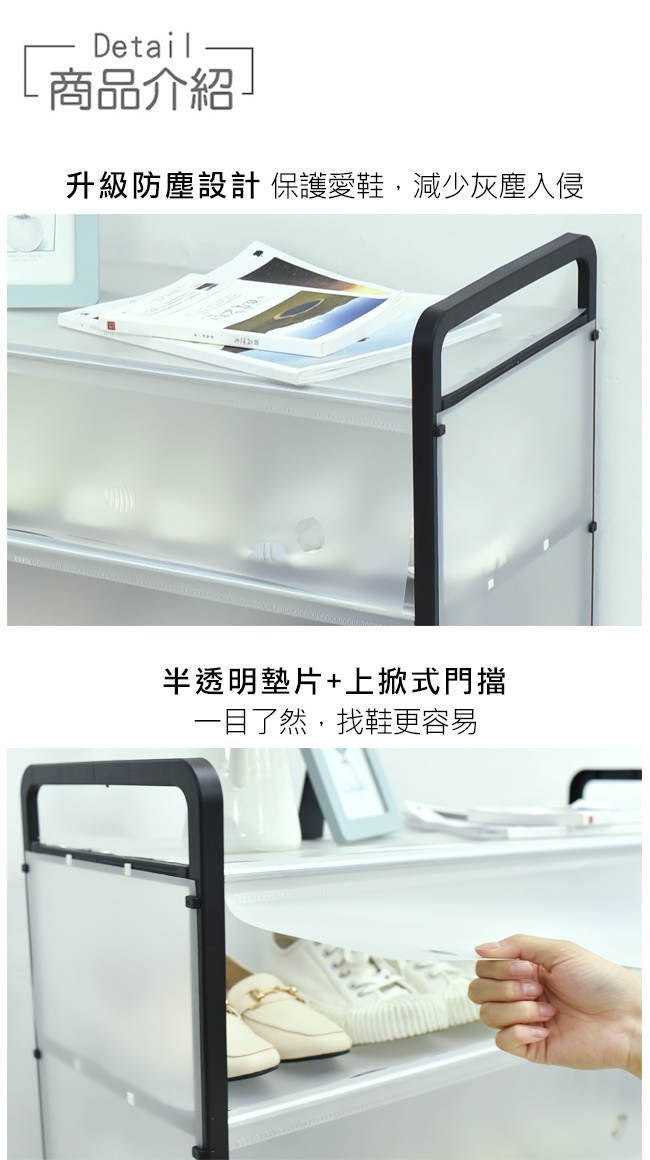 半透明墊片+上掀式門擋,一目了然,找鞋更容易