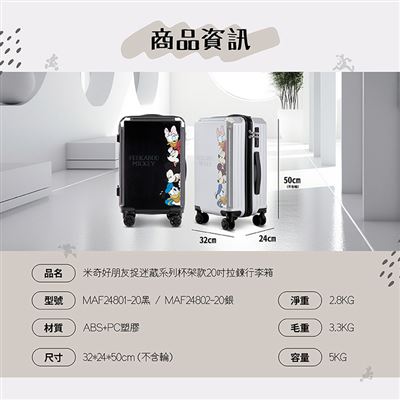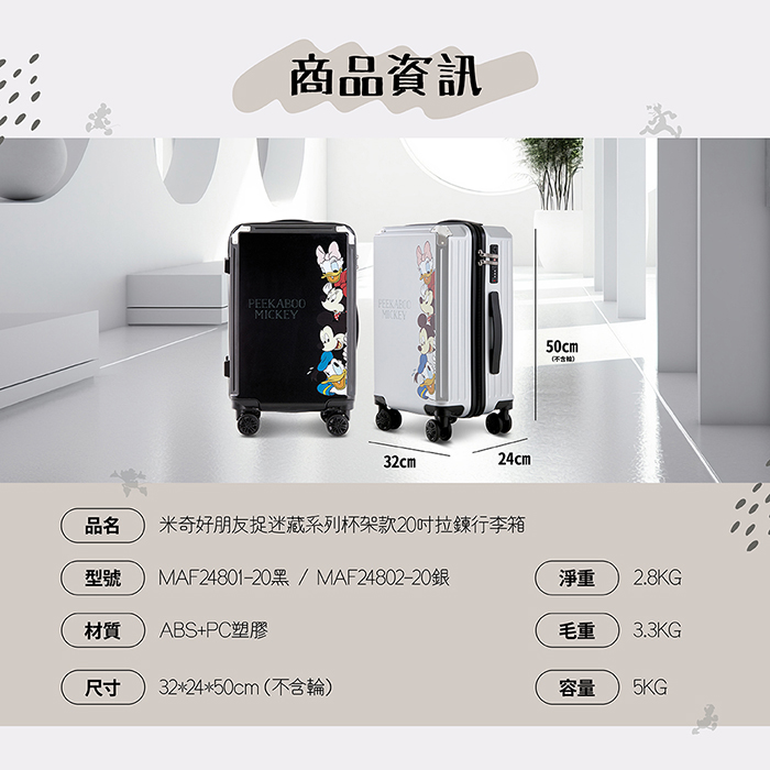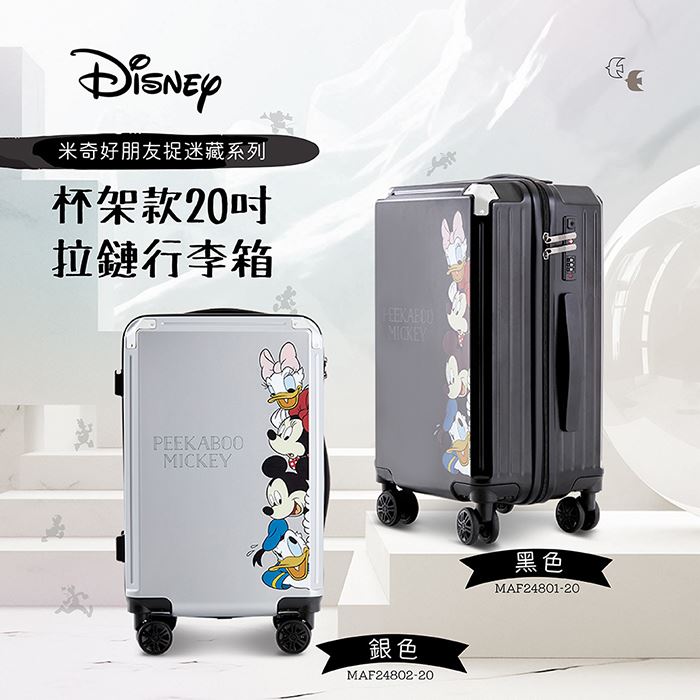 | 【商品名稱】 | 【Disney 迪士尼】米奇捉迷藏系列杯架款拉鏈行李箱20吋 - 2色可選 |