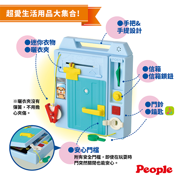●信箱●信箱鎖鈕:運用拇指跟食指,轉動信箱鎖鈕及拉一拉信件,滿足寶寶好奇心!