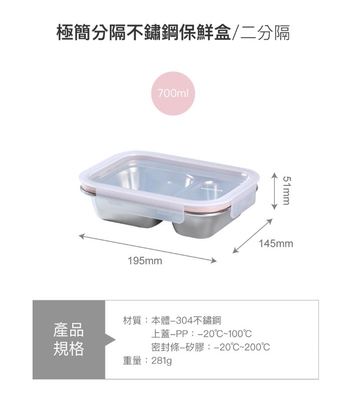| 內容物 | 【2入】樂扣樂扣極簡分隔不鏽鋼保鮮盒/700ml/二分隔 |