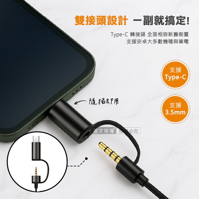 雙接頭設計,支援Type-C及3.5mm兩種設備