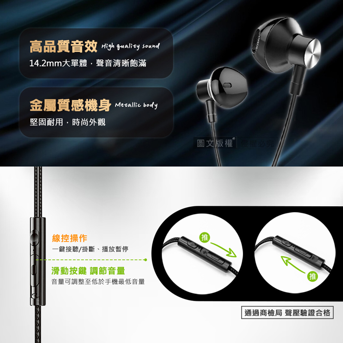 | 材質 | 金屬耳殼+TPE線材 |