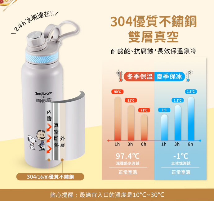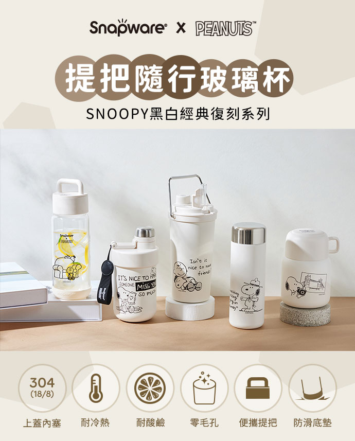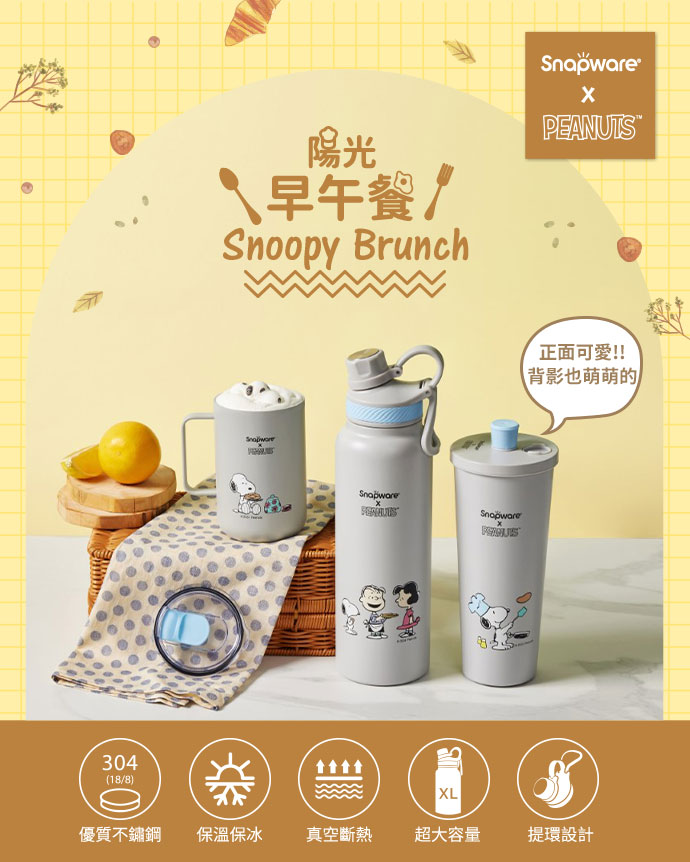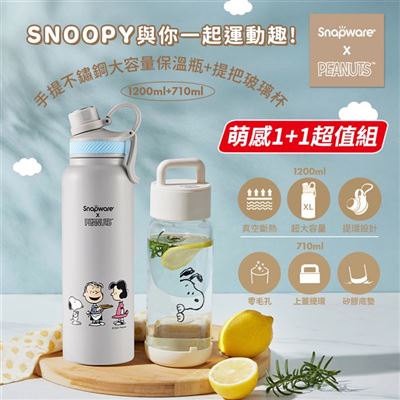 Snoopy陽光早午餐-不鏽鋼保溫保冰運動瓶1200ML 手提隨行玻璃水瓶710ml-SNOOPY |