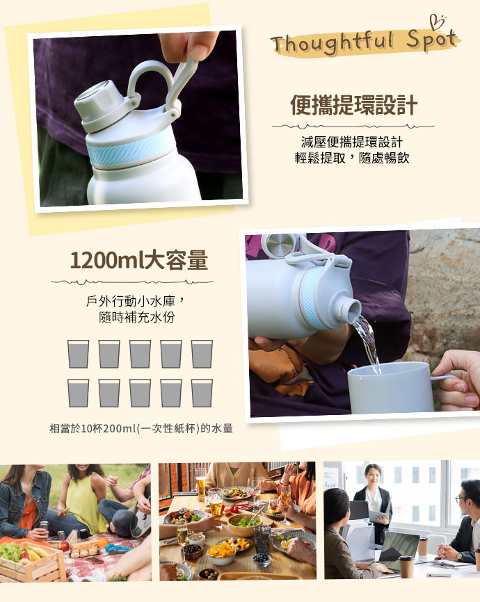 | 商品名稱 | (萌感1+1超值組)【美國康寧】手提不鏽鋼大容量保溫瓶1200ml-陽光早午餐+提把隨行玻璃杯710ml-復刻黑白 |