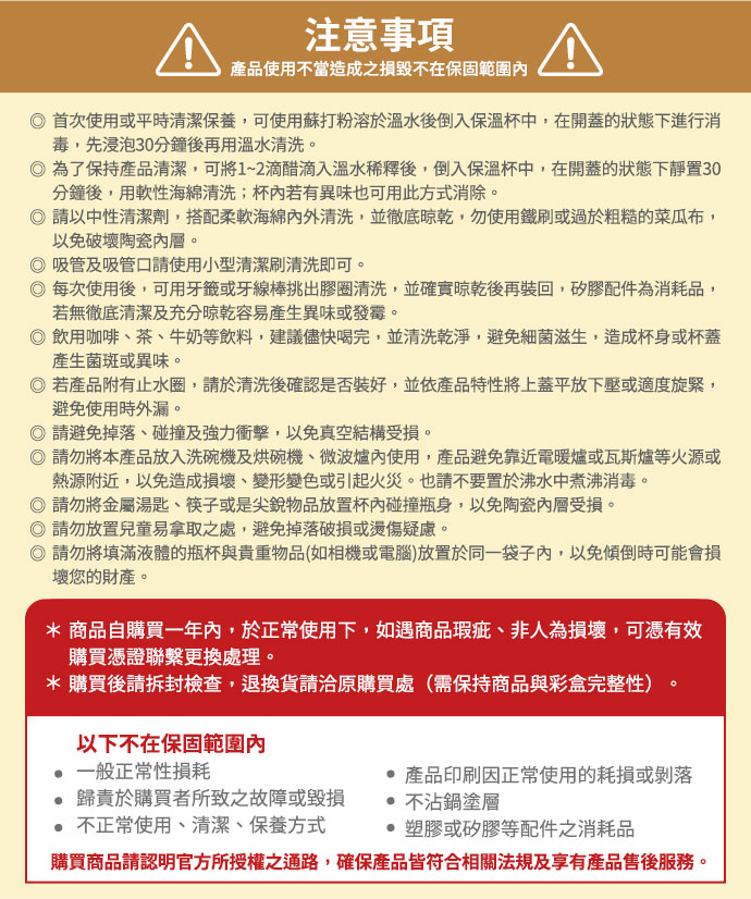 ● 瑕疵商品:在您收到商品後七日內發現商品有破損或贈品缺漏的情況,請立刻與我們聯繫,以便我們重新將新品補送到您的手上,並將您手上有瑕疵或損壞的產品交由快遞收回。