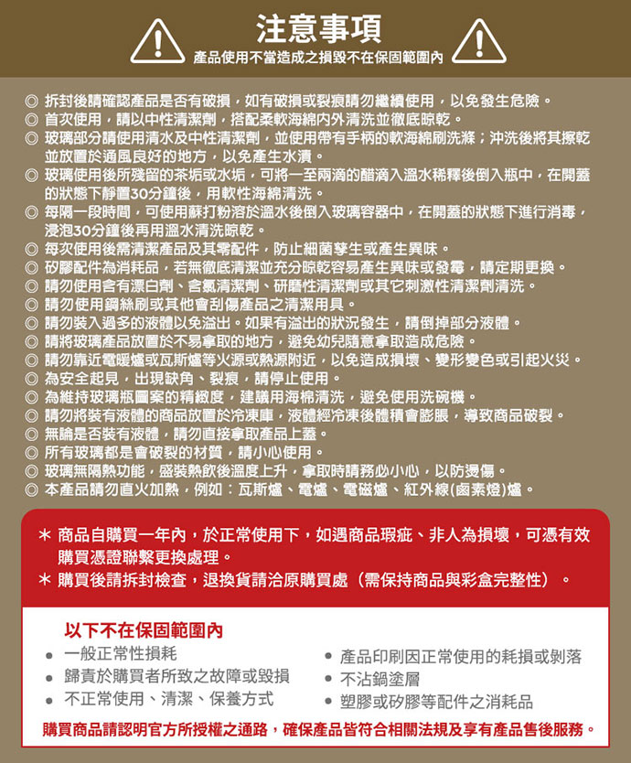 | 內容物 | 不鏽鋼冰保溫瓶1200mlX1+玻璃瓶710mlX1 |