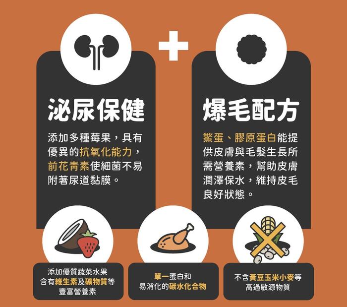 ◎添加優質魚油提供omega-6脂肪酸和omega-3脂肪酸以及鱉蛋粉、膠原蛋白及卵磷脂,可促進皮毛健康