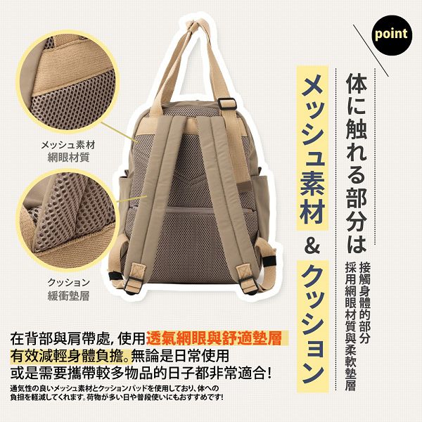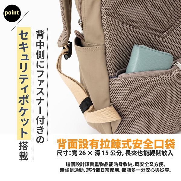 背部為透氣網布設計不悶熱+防盜拉鍊隱藏後口袋