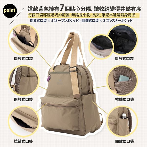 - 7個多機能口袋:主袋+內袋+外袋設計,收納分類更聰明,小物不再找不到。