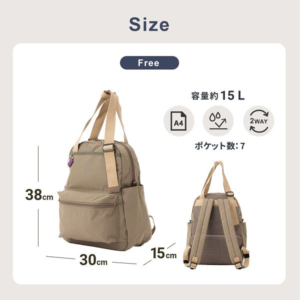 | 【商品規格】 | 尺寸&規格: 寬度:約 30cm* 高度:約 38cm* 厚度:約 15cm 手把長度:約 62cm可調式 肩背帶長度:可調式 43~82cm 容量:約 15L 重量:約 520g |