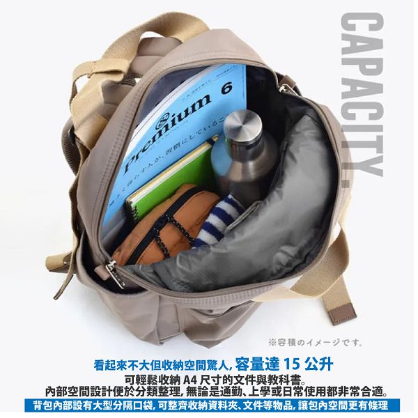 7個多機能口袋-主袋+內袋+外袋設計收納分類佳