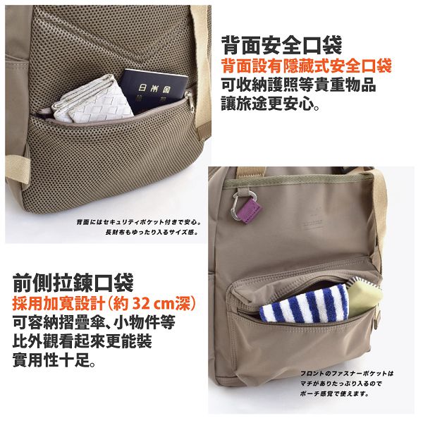 - 雙面撥水加工:不只外層,連內層都防潑水,意外下雨也能輕鬆應對。