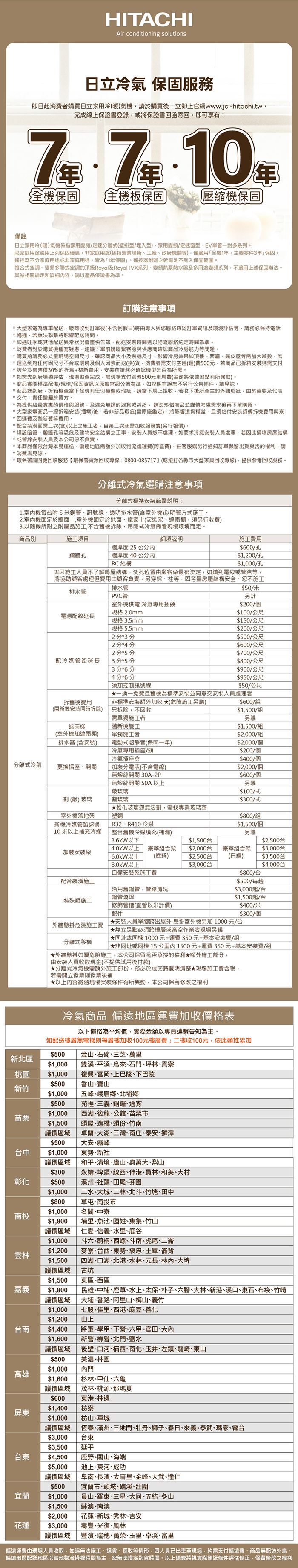 | 保固說明 | 官網登錄享全機零件7年、主機板7年、壓縮機10年保固(詳見保固條款或官網) 。特殊場域、營業用場所保固年限依原廠公佈或保證書為主。安裝施工保固一年。 |