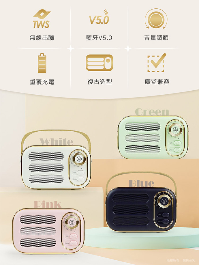 aibo LV50 手提便攜 復古藍牙喇叭(V5.0) ★支援TWS無線串聯★