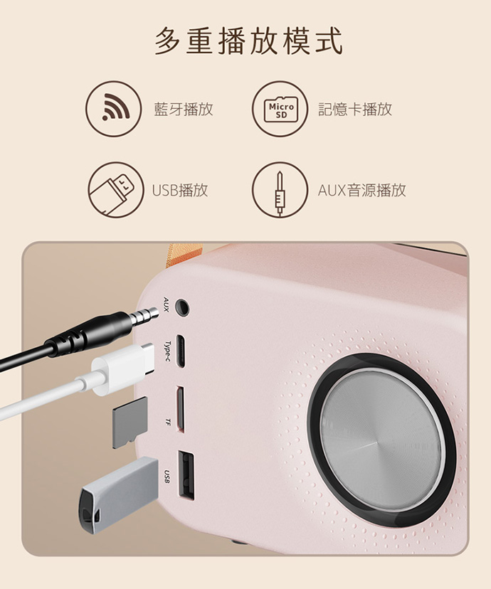 支援藍牙/記憶卡/USB隨身碟/AUX-IN(LINE-IN)播放功能,滿足您多種需求!