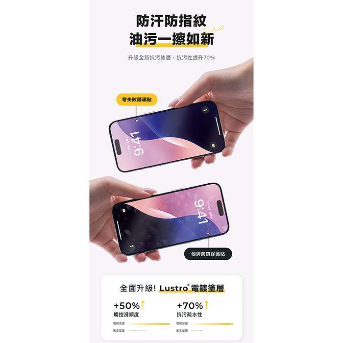 真空電鍍奈米塗層,抗指紋,保持螢幕潔淨