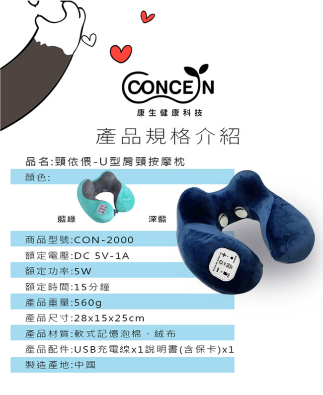 | 【商品名稱或型號】 | 【康生】頸依偎U型肩頸按摩枕(CON-2000) |